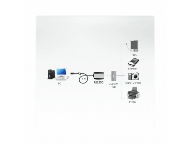 Aten line extender UE250 je ojačevalnik signala za USB linije.