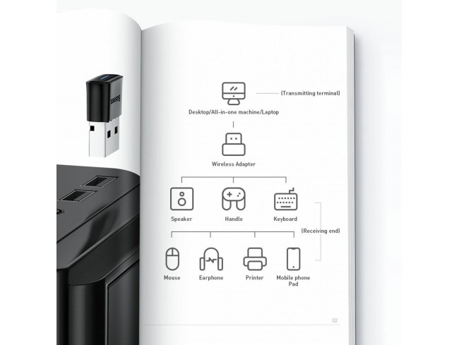 Paket vsebuje: 1x Baseus bluetooth adapter USB mini 20m BT 5.0 BA04 ZJBA000001, 1x Navodila