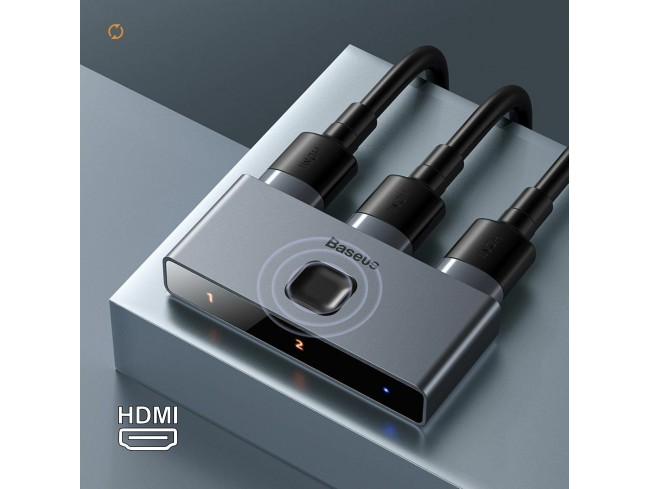 Baseus HDMI stikalo omogoča priklop dveh HDMI naprav na en zaslon, deluje pa tudi v obratni smeri pri kateri lahko priključite dva zaslona na eno HDMI napravo. Enostaven preklop s pritiskom na gumb med HDMI napravami in zasloni v visoki ločljivosti 4K 30Hz!