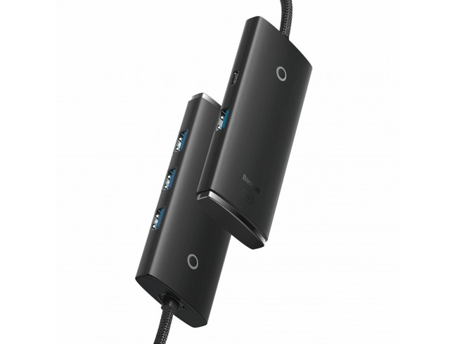 Baseus Hub za priklop več USB naprav na en računalnik, dodatnih gonilnikov ne potrebuje, s priklopi 4x USB 3.0 za prenos podatkov in 1x USB TipC priklop za napajanje. Zaradi kompaktne oblike pa je namenjen lažjemu prenašanju ter podpira hitrosti prenosa do 5 Gbit/s.