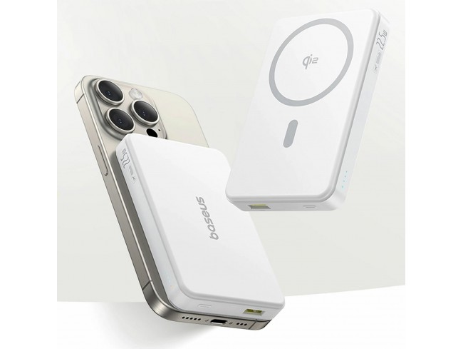Baseus MagSafe Airpow2 Qi2 P10080000213-00 prenosna baterija za novejše Apple iPhone naprave s podporo za MagSafe. Omogoča hitro brezžično polnjenje z močjo do 15 W (Qi2) ter 22,5 W pri uporabi kabla. Z zmogljivostjo 10.000 mAh zagotavlja dovolj energije za celodnevno uporabo, hkrati pa omogoča tudi klasično polnjenje prek kabla. Kompaktna in lahka zasnova ustreza standardom za ročno prtljago, zato je primerna tudi za uporabo na letalu.