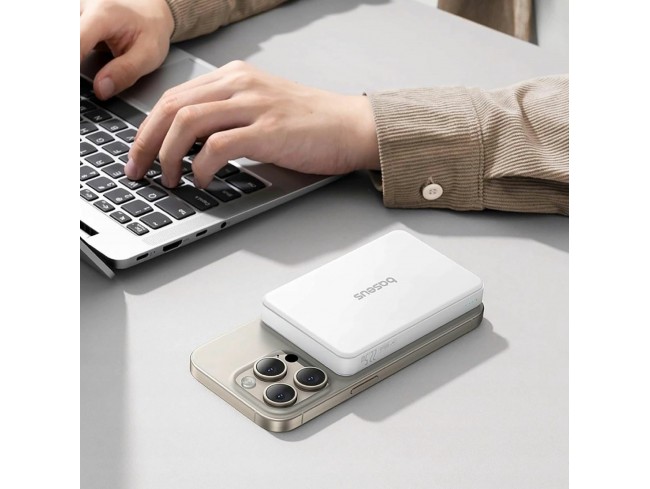 Baseus MagSafe Airpow2 Qi2 P10080000213-00 prenosna baterija za Apple iPhone s podporo za MagSafe. Omogoča hitro brezžično polnjenje do 15 W (Qi2) ter 22,5 W pri uporabi kabla za ostale naprave. Z zmogljivostjo 10.000 mAh zagotavlja dovolj energije za celodnevno uporabo, omogoča tudi klasično polnjenje prek kabla. Ustreza standardom za ročno prtljago, zato je primerna tudi za uporabo na letalu.