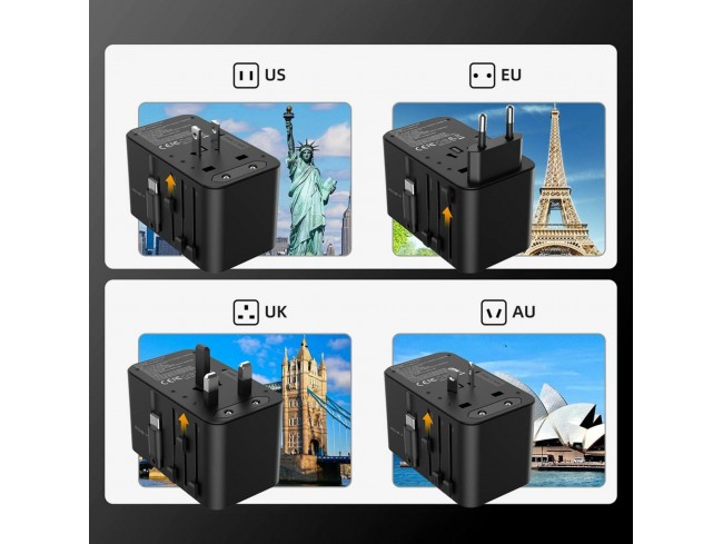 Choetech potovalni adapter + USB TipC PD 45W polnilec + kabel EU USA UK AU PD5021