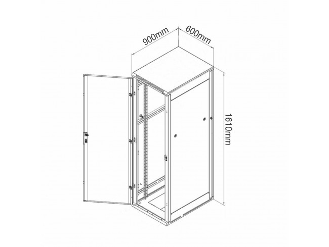 DATECH visoko kvaliteten sestavljiv kabinet iz jekla, pakirano v več paketih, ključavnica in varnostno steklo na prednjih vratih, vrata in stranice so enostavno snemljive, dimenzije znašajo 32U 600x900mm.