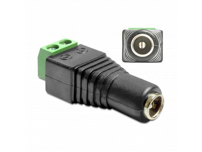 Delock konektor DC vtičnica za hitri priklop močno olajša delo pri zaključnih kablih CCTV, vmesnik ženski, terminalna vijaka, material Plastika.
