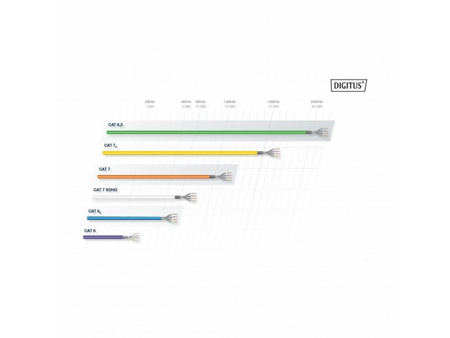 Digitus CAT7 kabel, SFTP tehnologija, 1200 MHz, trdo žilni, bakreni vodnik, debeline AWG23 (4x2), kabel za 10Gigabit mrežne povezave...