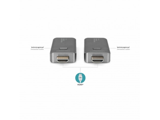 Line extender-HDMI Digitus omogoča brezžično prenašanje video in avdio signala HDMI na razdalji do 50m. Line extender omogoča maksimalno resolucijo do 1080p/60 Hz in za delovanje ne potrebuje nobene dodatne programske opreme. Oddajnik in sprejemnik se lahko napajata preko vaše HDMI naprave.