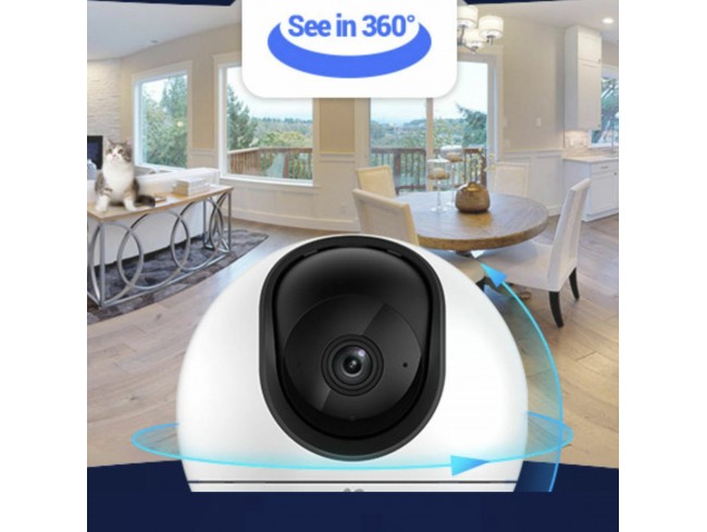 Notranja brezžična IP kamera za video nadzor EZVIZ, za domačo rabo. Kamera omogoča vrtenje in spreminjanje nagiba kamere preko aplikacije. Ponaša se s 5MP ter vidnim kotom H104°, V87°, D53°. Kamera ponuja nočno snemanje z IR dosegom do 10m in funkcijo zazavanja ljudi in živali. Kamera omogoča snemanje na Micro SD kartico do 512GB, napajanje preko USB Tip C priklopa ter dostop do posnetkov preko mobilne aplikacije. Enostavna namestitev s QR kodo.