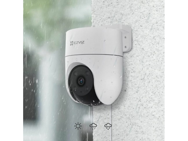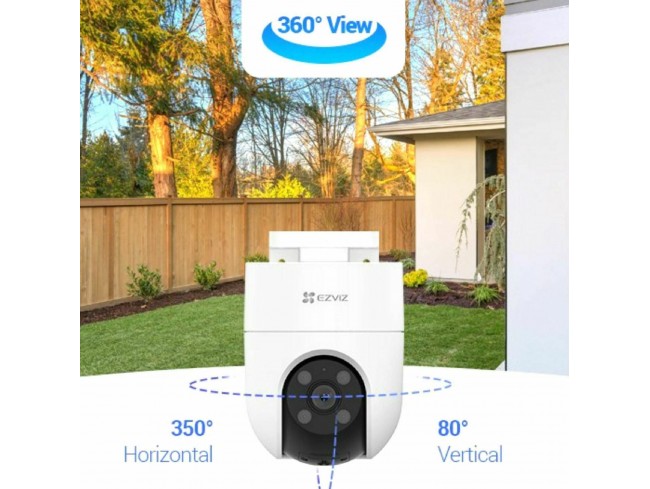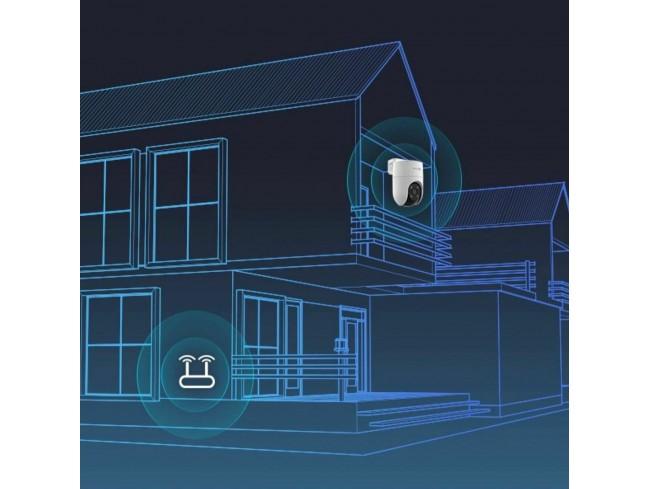 EZVIZ CS-H8c je zunanja nadzorna IP kamera z motoriziranim vrtenjem, ki omogoča široko pokritost območja in spremljanje v ločljivosti 1920 x 1080. Namenjena je varovanju doma ali poslovnih objektov, saj omogoča zaznavo oseb, samodejno sledenje gibanju in dvosmerno komunikacijo.