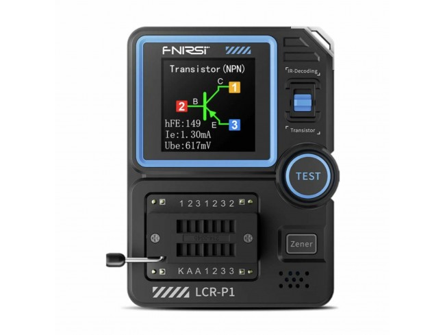 Fnirsi LCR-P1 je visoko natančen elektronski merilnik za analizo in merjenje lastnosti polprevodniških in pasivnih komponent. Namenjen je inženirjem, tehnikom in serviserjem za hitro preverjanje tranzistorjev, diod, FET, uporov, kondenzatorjev in induktivnosti. Naprava samodejno prepozna tip komponente, razpored pinov in ključne parametre, kar poenostavi delo in zmanjša možnost napak.