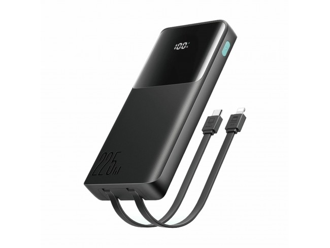 Joyroom JR-PBF19 Powerbank s kapaciteto 10.000mAh in močjo 22,5W omogoča hitro polnjenje kjerkoli. Ima vgrajena kabla USB-C in Lightning, primerna za Android in Apple naprave. Kompakten, lahek in z zaslonom za prikaz preostale energije.