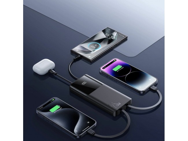 Joyroom JR-PBF19 je zmogljiva powerbanka s kapaciteto 10.000mAh in močjo 22,5W za hitro polnjenje. Opremljena je z vgrajenima kabloma USB-C in Lightning, kar omogoča polnjenje naprav brez dodatnih kablov – idealna za Android in Apple uporabnike. Pametni zaslon prikazuje preostalo energijo, kompaktna in lahka zasnova pa je popolna za potovanja. Dvosmerno hitro polnjenje poskrbi za maksimalno učinkovitost.