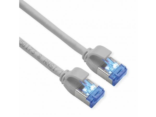 ROLINE Slim S/FTP Cat.6A patch kabel zagotavlja stabilno prenosno kakovost v 10 Gigabit Ethernet omrežjih. Dolžine 5 m in sive barve. Tanek kabel s premerom 4.5 mm, LSOH plaščem in podporo za PoE.