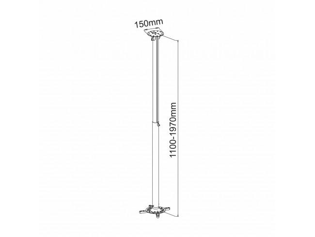 SBOX nosilec za projektor je zanesljiva in prilagodljiva rešitev za montažo vašega projektorja. Zmogljivost do 15 kg omogoča varno pritrditev različnih modelov. Nastavljiv naklon do +-30° vertikalno in 360° horizontalno vam omogoča, da dosežete optimalen projekcijski kot, ne glede na postavitev prostora. Z odmikom od stropa med 1100 mm in 1970 mm se prilagodi vašim potrebam glede višine, medtem ko elegantna srebrna barva dopolnjuje estetiko vašega prostora.
