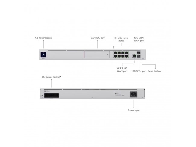 UniFi Dream Machine Pro ali UDM-PRO je usmerjevalnik z 9 gigabitnimi Ethernet priključki in 2 SFP+ priključkoma.