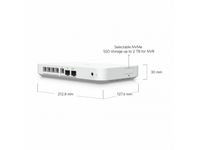 Ubiquiti Cloud Gateway Max UCG-Fiber je kompakten 2.5G usmerjevalnik, ki podpira več kot 50 UniFi naprav in preko 500 uporabnikov. 5 Gbps IPS routing zagotavlja hitro in varno delovanje omrežja. Poleg tega ima možnost izbire NVR shranjevanja, kar omogoča nadzor nad shranjevanjem videoposnetkov. Idealna rešitev za napredna omrežja z visoko zmogljivostjo in nadzorom.