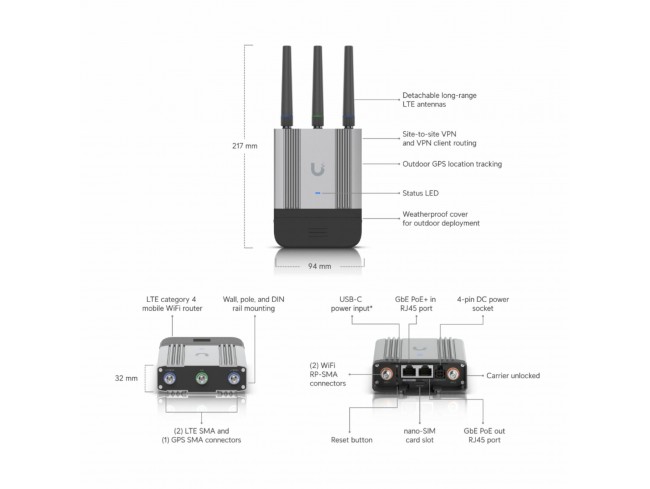 Opomba: Ponuja varen oddaljeni dostop in popolno upravljanje prek UniFi Mobility Managerja na mobility.ui.com za 2€ na mesec ali 19€ na leto na mobilni usmerjevalnik