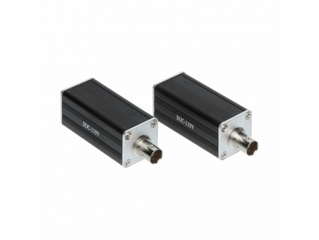 Komplet EOC-110KIT omogoča prenos Ethernet signala prek koaksialnega kabla. Vsaka enota ima RJ45 in BNC priključek, podpira hitrost 10/100 Mb/s ter doseg do 200 m po kablu RG6. Primeren je za IP kamere in omrežne naprave.